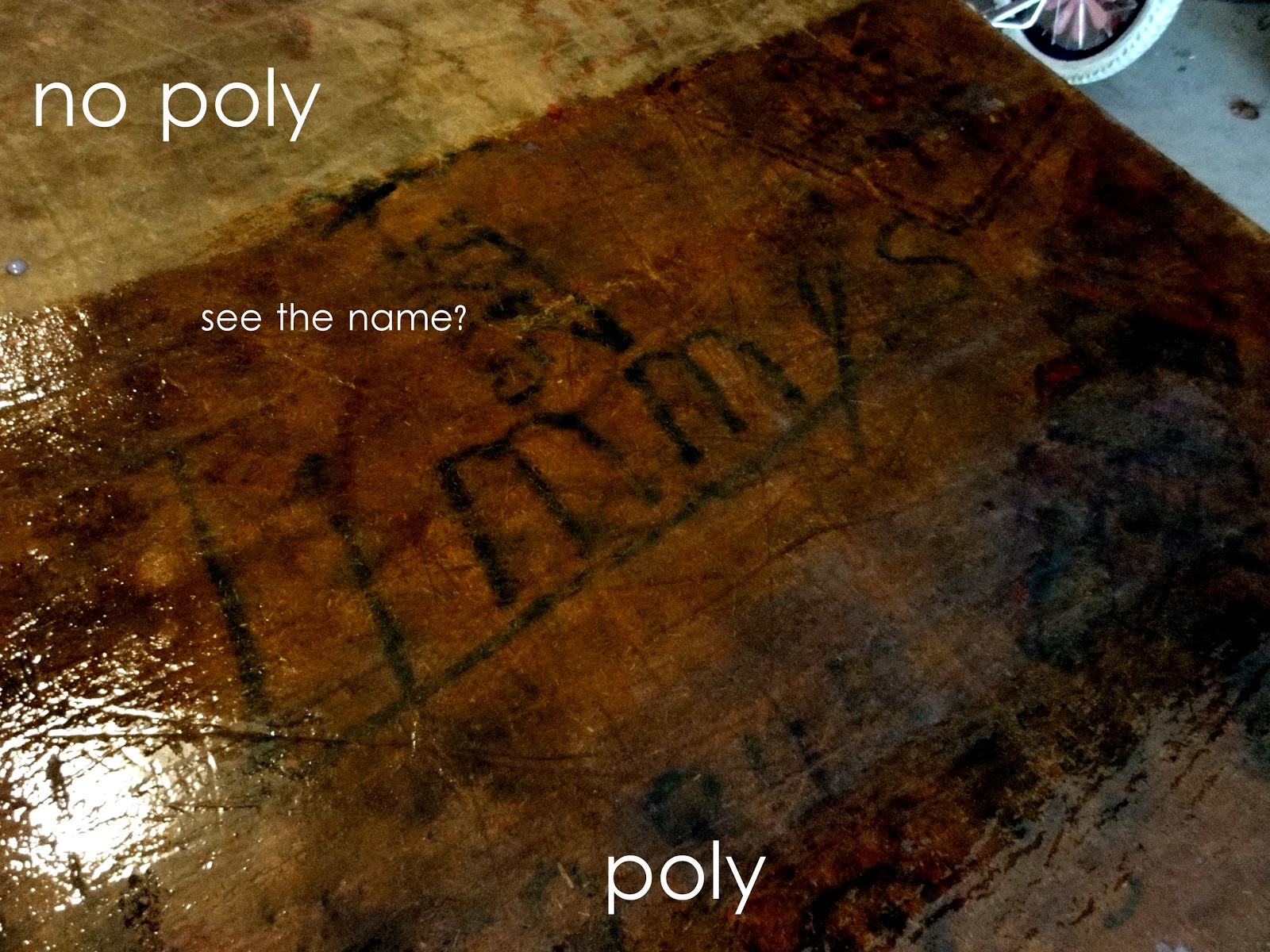 I got a little creeped out when while poly-ing the top of the table, a name just turned up.
