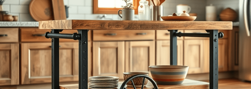 The beauty of this table is that we can move it because the wheels not only are cool to look at but are functional as well. So if we have a big gathering and need room, I can move it to the corner in the kitchen. Or I could move it to the dining room if we needed it in there.