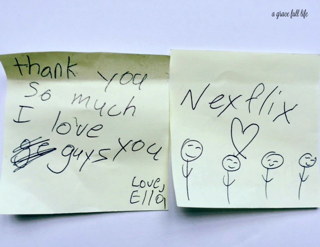 Anyhoo, this is the note she gave me to give to Netflix: