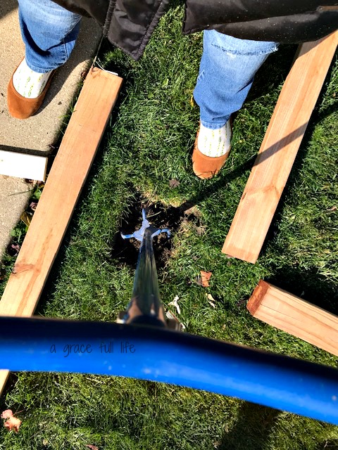 The day of the project, the temperature reached a high of 45 degrees with a wind chill of roughly 35 degrees. I don’t do cold very well, and did you know that building a fence requires a lot of digging? I swear I believed Satan was going to appear and start assisting us.