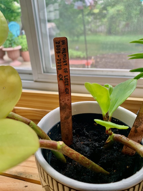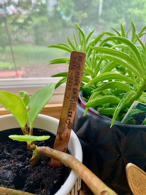 I bought those sticks on Etsy last winter with the intention of putting them in the garden, but they were too small (and too cute) so I kept them inside.