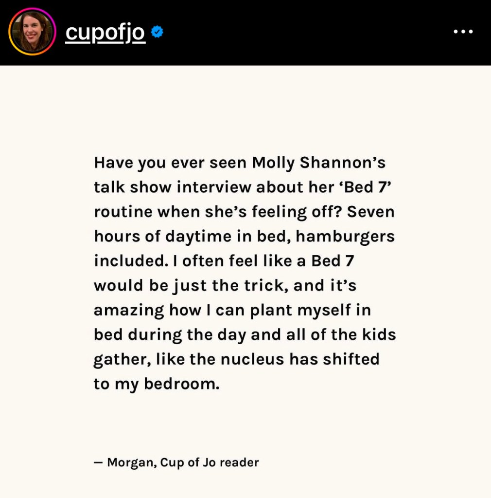 2. There’s so much here. I love your pet photos and the glimpses into your rooms/spaces. The video of the woman alone in her house doing things after her kids left for college – yikes. That spoke to me. I think my fav thing you’ve shared here is the video of the band following the runners. If that happened to me, I’d have to stop running because I’d be laughing so hard. Glad you enjoyed your birthday month. 53 looks happy.