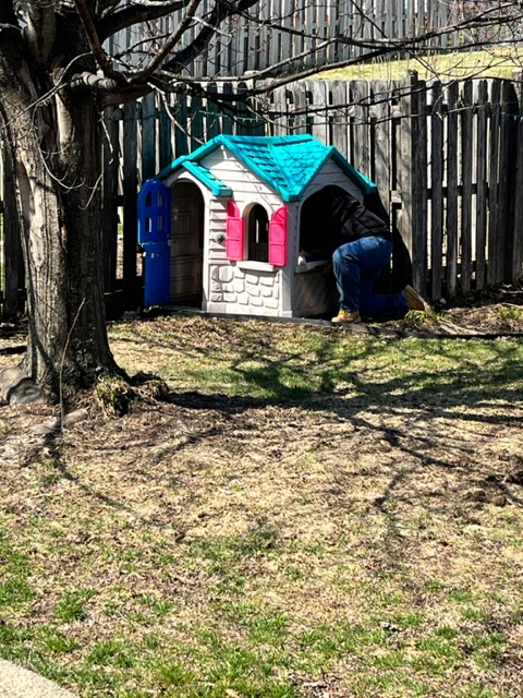 Mike dismantled the girls’ playhouse. We’d had it up since we moved into this house in 2005, but now that the kids are grown, it seemed like a waste of space. We wanted another family to be able to enjoy this.
