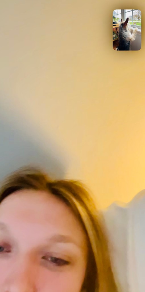 When Anna and I are on Facetime and she is talking to Biscuits, he always looks out the window to see if she is coming to our house. 💕