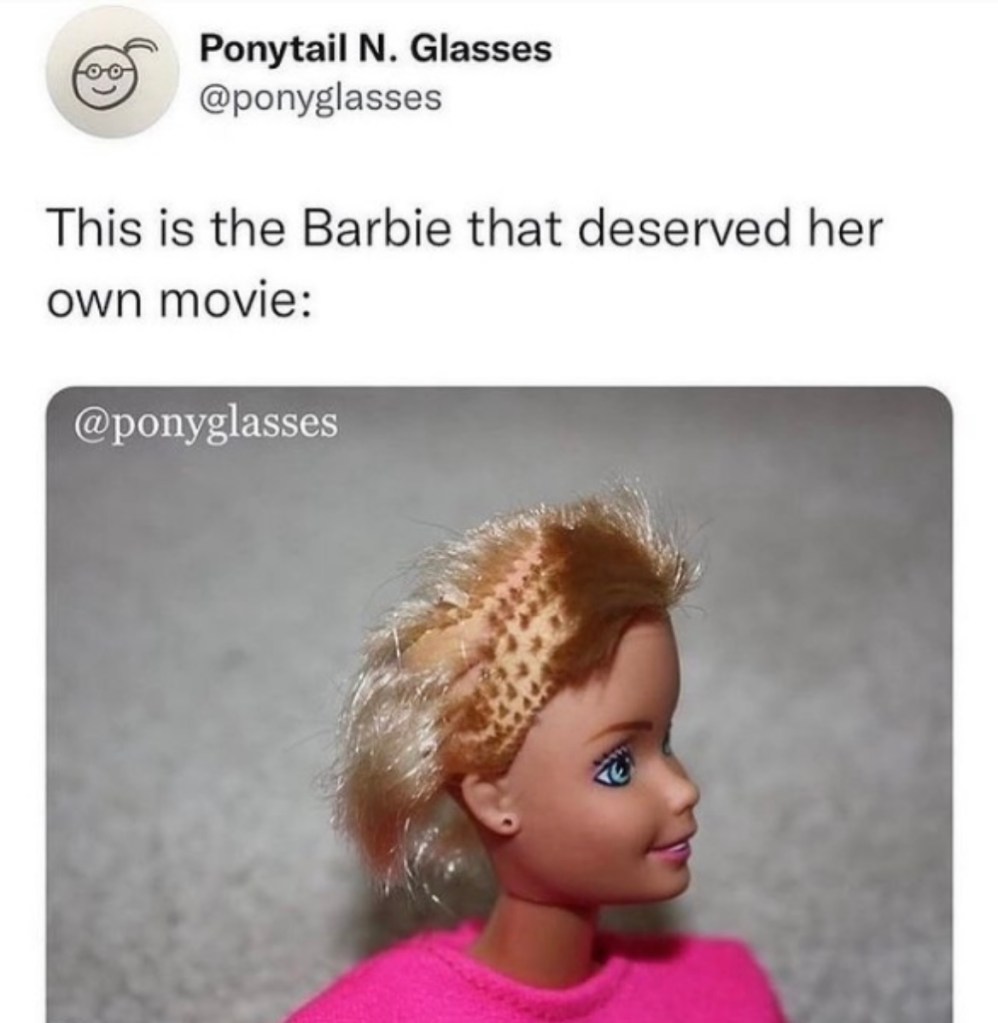 My daughter has a Barbie with hair JUST LIKE the one in that photo. Ha! I remember cutting my Barbies’ hair, too. So fun. My husband doesn’t get it — he thinks she’s “ruining” her dolls, but I say that’s half the fun of having a Barbie!
