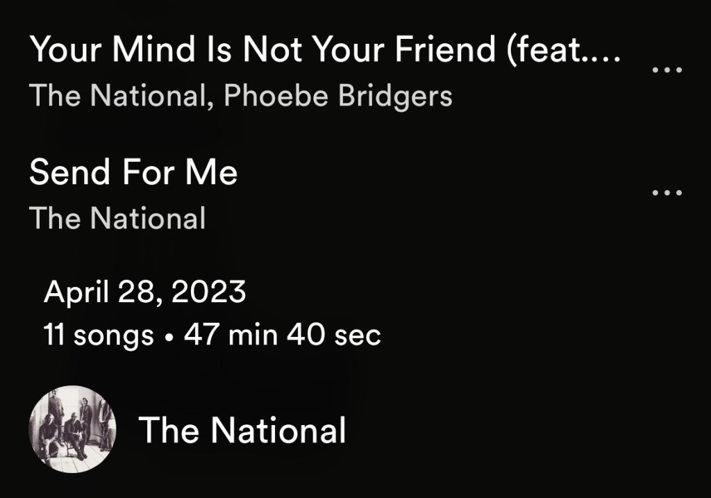 The National is still relatively new, so there’s no need to be embarrassed. They are from Ohio! I’m sure you will like them, so give them a listen.