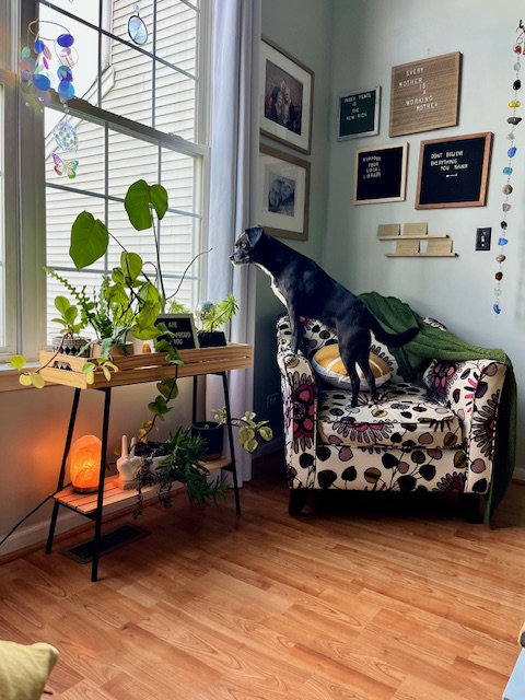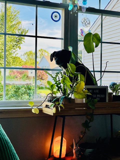 my normally laid-back dog was obsessively stalking the bird feeder every time I entered this room.