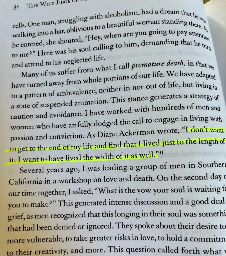 Ooh, that line from the book about living the width of life. Have to write that one down.