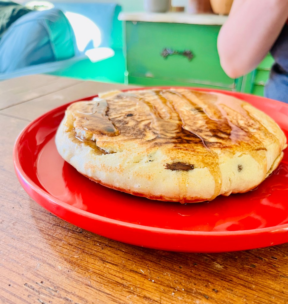 Those were chocolate chips in both the bread and the pancake! We love our chocolate around here. 🤣