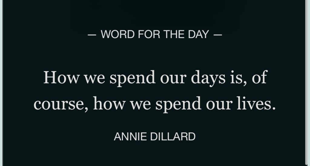 Right? It’s all so important. Like Annie Dillard says, “How we spend our days is, of course, how we spend our lives.” Staying in the moment is really tough for me. I know I’m not alone in this struggle.