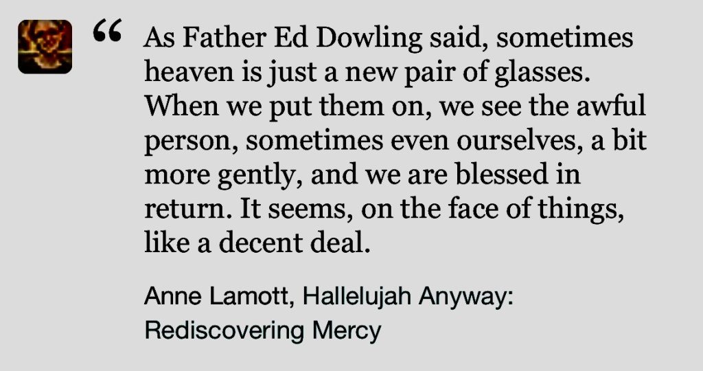 I do remember saying I particularly liked the quotations from Tommy Orange and Anne Lamont. Anne Lamont is in no way unexpected, but I’ve yet to read Tommy Orange, so it raises my hopes for the books which are on my Kindle waiting for them to read the top of the list.