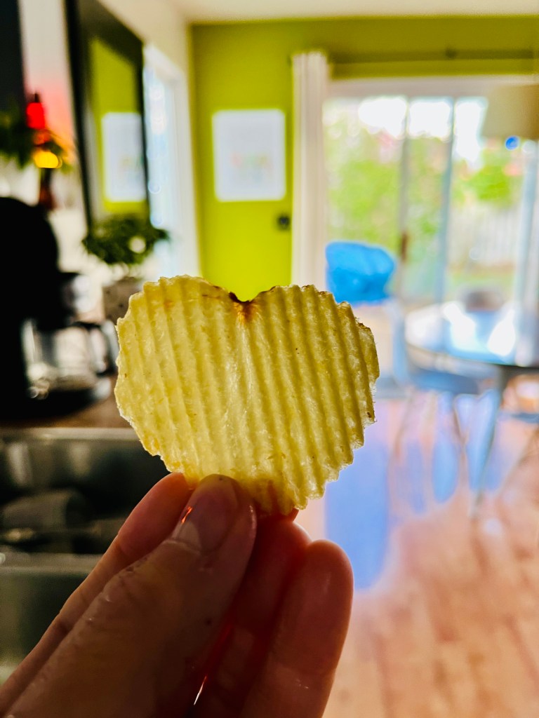 A HEART SHAPED POTATO CHIP. I both would want to save it forever and eat it immediately. What’s better than a ripple chip with dip?