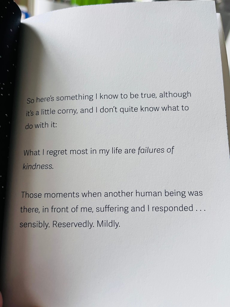 I couldn’t agree more that my biggest regret is failures of kindness. That lesson/moral should be taught in school.