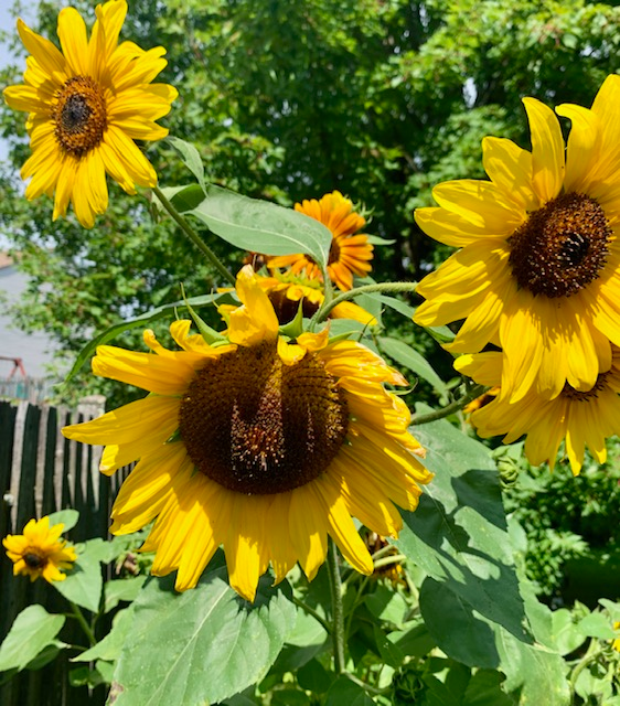 Anyway! Your zinnias look great and so do your volunteer sunflowers!