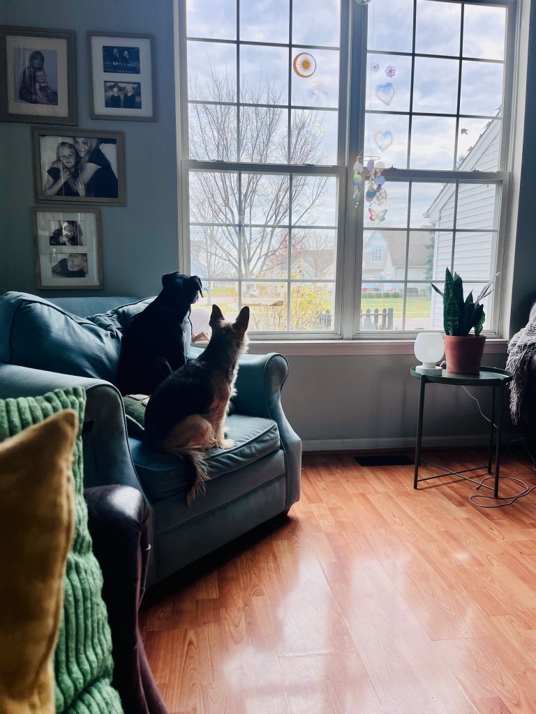 I love the rainbow on your jeans, the dogs watching the birds, you decorating for another holiday; all the good stuff.