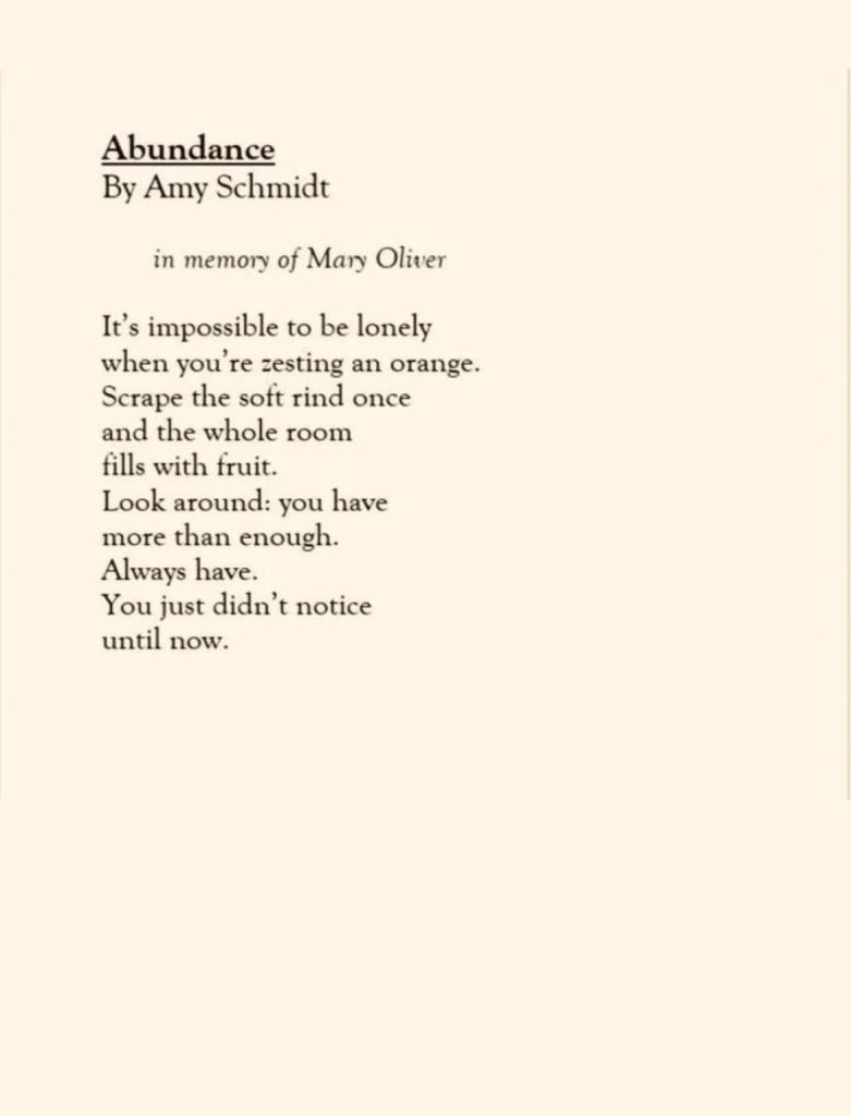 #5–Love this poem. I knew Mary Oliver had died. I was introduced to her poetry very late in my life, unfortunately, but she’ll be with us forever.