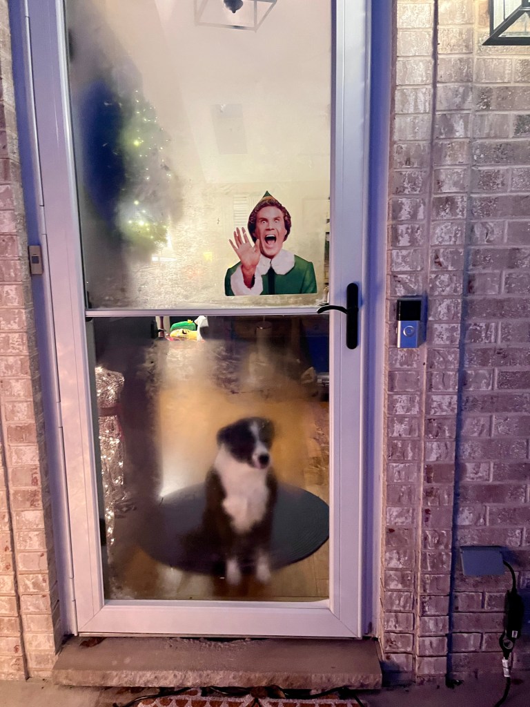 We love the movie Elf—my mom even did an Elf Dinner for us during the holidays, which is what that Elf on the door is for!